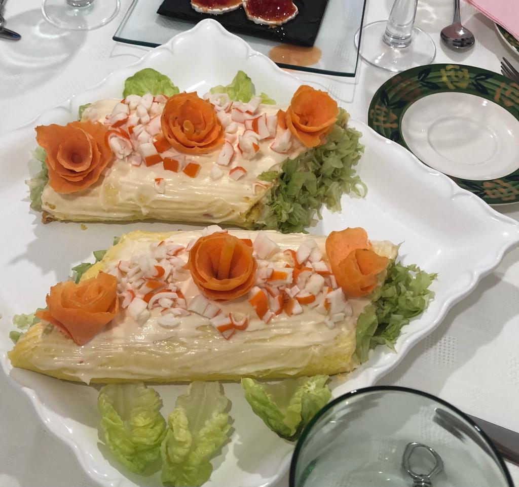 - Desenrollar el bizcocho y pincelarlo con mayonesa, cubrir con el relleno y envolver apretándolo y dejarlo en la nevera bien envuelto en papel albal o transparente de un día para otro ó 2 días.